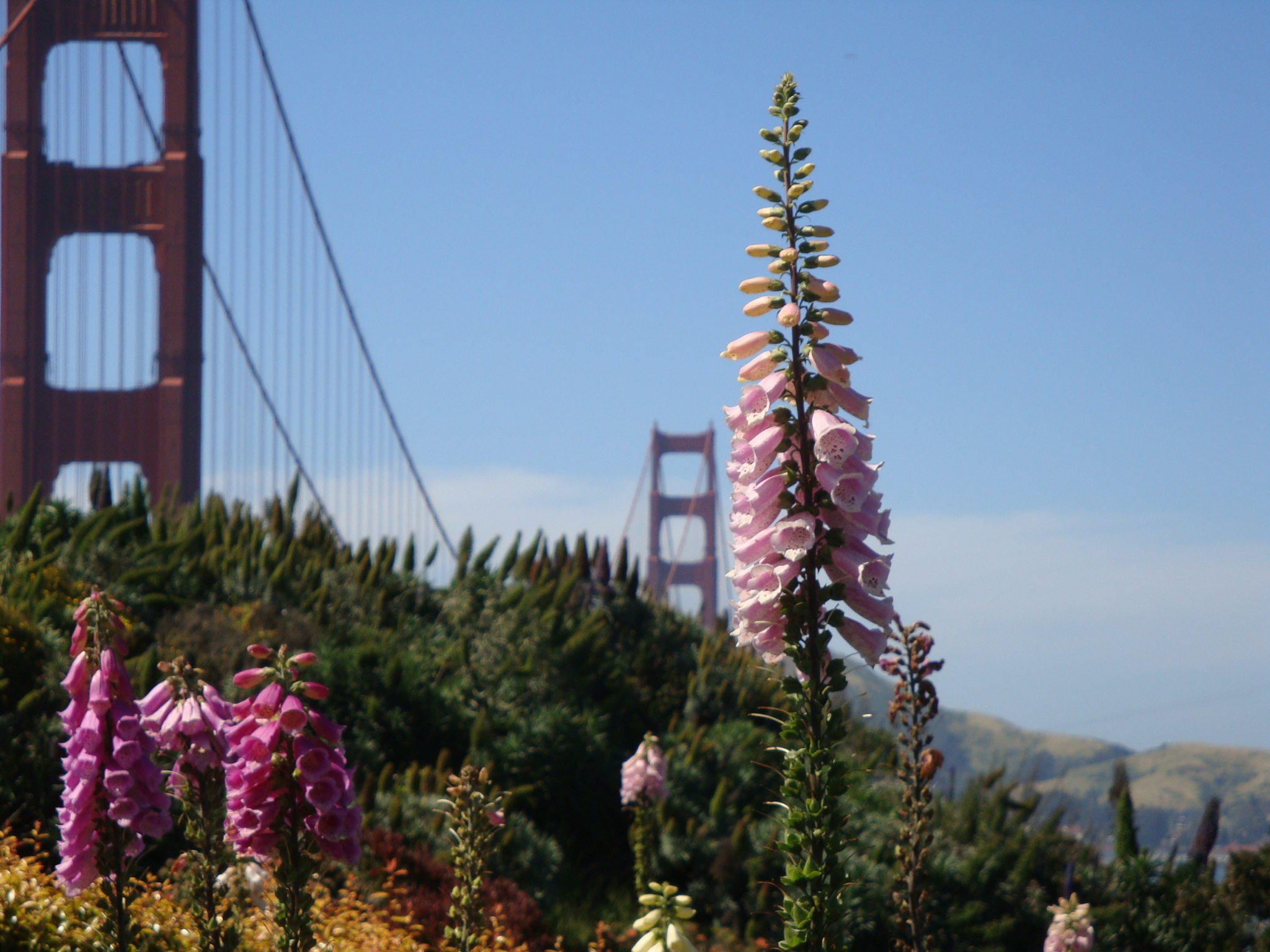 This is near the Golden Gate bridge San Francisco. You can see the bridge in the background. Actually the flower is on a lower level from the bridge. π