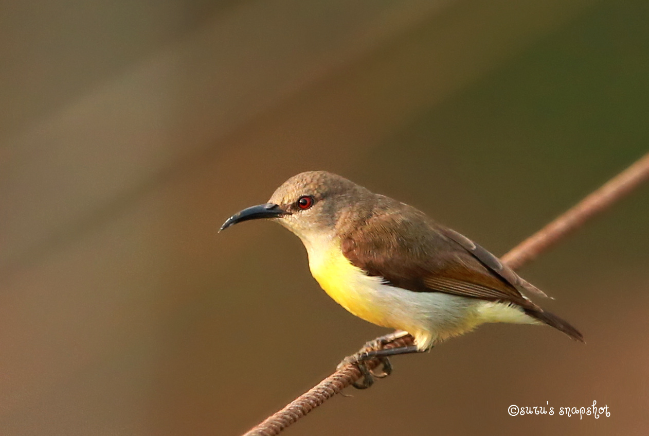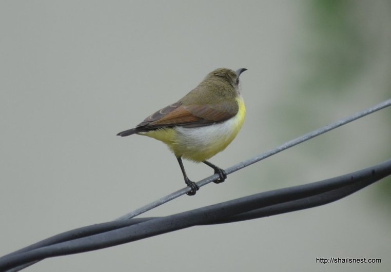 Its the female Purple-rumped Sunbird. Here is another picture of the same bird: