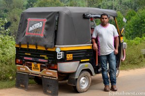The first Chandu in the post title is the man himself and the second is the tuk-tuk or the auto-rickshaw of his. Our hosts at The Treasure Trove (link) suggested a trip to Edakkal Caves followed by Muthanga Wildlife Sanctuary and may be Karapuzha Dam if we could squeeze it in, as things-to-do on our first day at Wayanad. Accordingly Chandu with his tuk-tuk was pressed into service. Did we mind going by a tuk-tuk, Reena wanted to know. Not at all. We were game for anything. Seeing parts of Wayanad in a tuk-tuk seemed a wonderful idea to us. That’s how a tuk-tuk tuk-tuk-ed to the front yard of their house a few minutes later with Chandu at its helm.