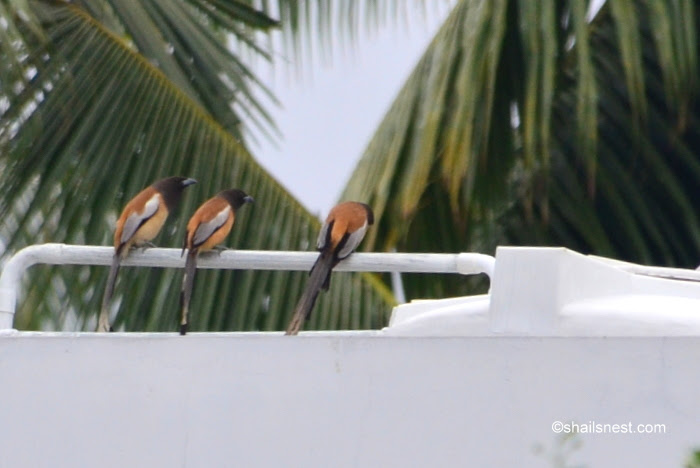 Unlike the crows or mynas, olanjali is an early riser, a la koel. You can hear groups of them boisterously chattering outside my window, even before the sun is up. What I find terribly amusing, and entertaining, about the olanjalis is the different type of sounds they make. You almost get fooled into thinking there are more than a couple of varieties of birds out there. Or is that their secret intention?