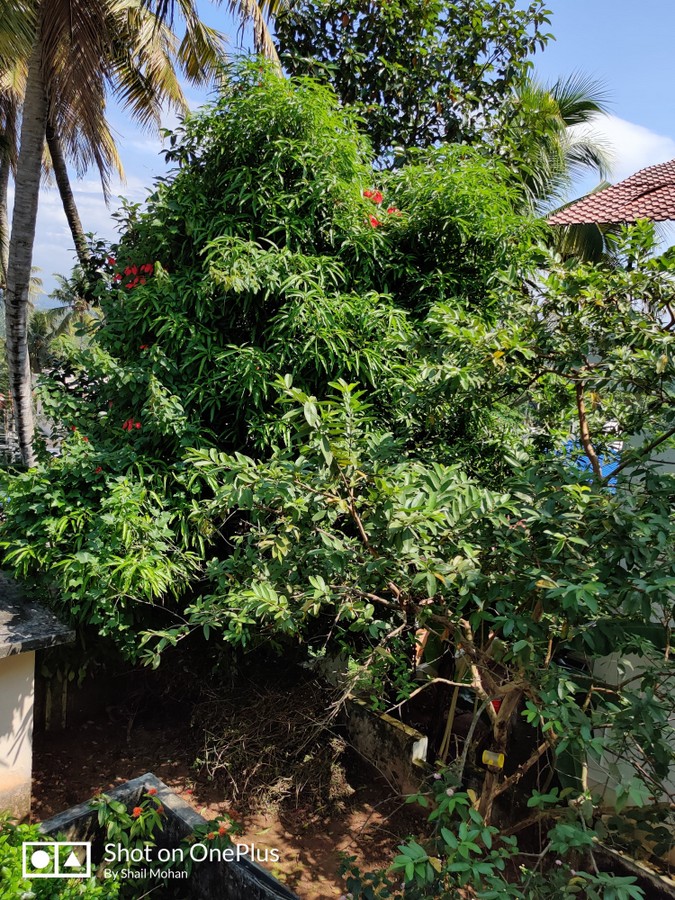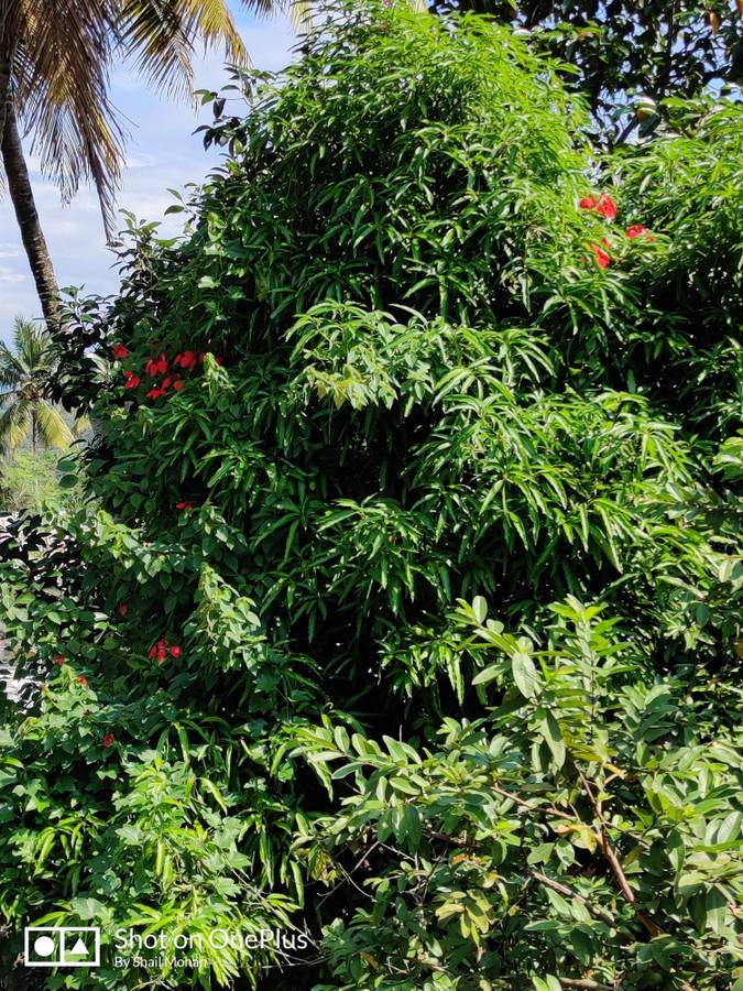 Most of it is the mango tree. The muessaenda has managed to climb through 🙂 I never knew it could crawl through the mango tree’s densely growing leaves and reach that high.