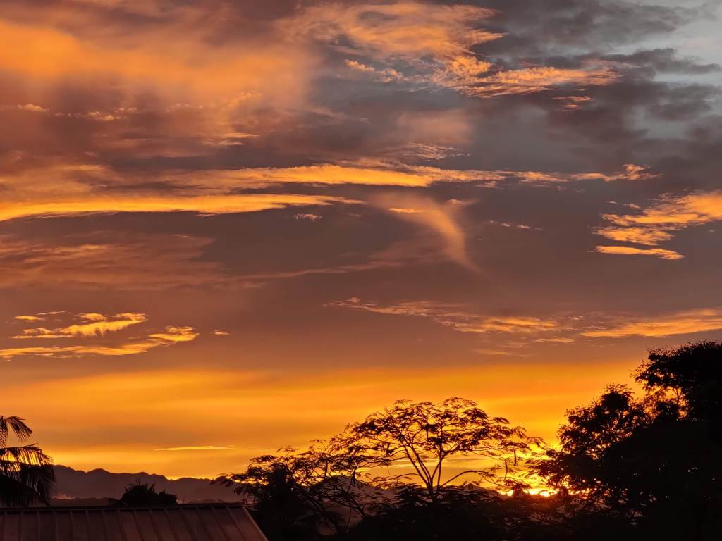 Today was different. The sun shone bright and hot after rising so spectacularly clad in orange. At least it did till noon. A light shower post-lunch sent me scurrying to bring the clothes on the line back inside. But it had been merely a scare tactic on the rain’s part. The sun came back to shine some more. In fact I was able to spend some time walking in the evening sun out on the roof terrace. The blue sky of the day had given way to one loaded with clouds, low lying ones, some white and fluffy, others wispy but in a darker shade. Perhaps it would rain again later tonight. The forecast says there is more rain in store for us this week. No matter, I am glad for the brief respite of this one sunny day in a long time.