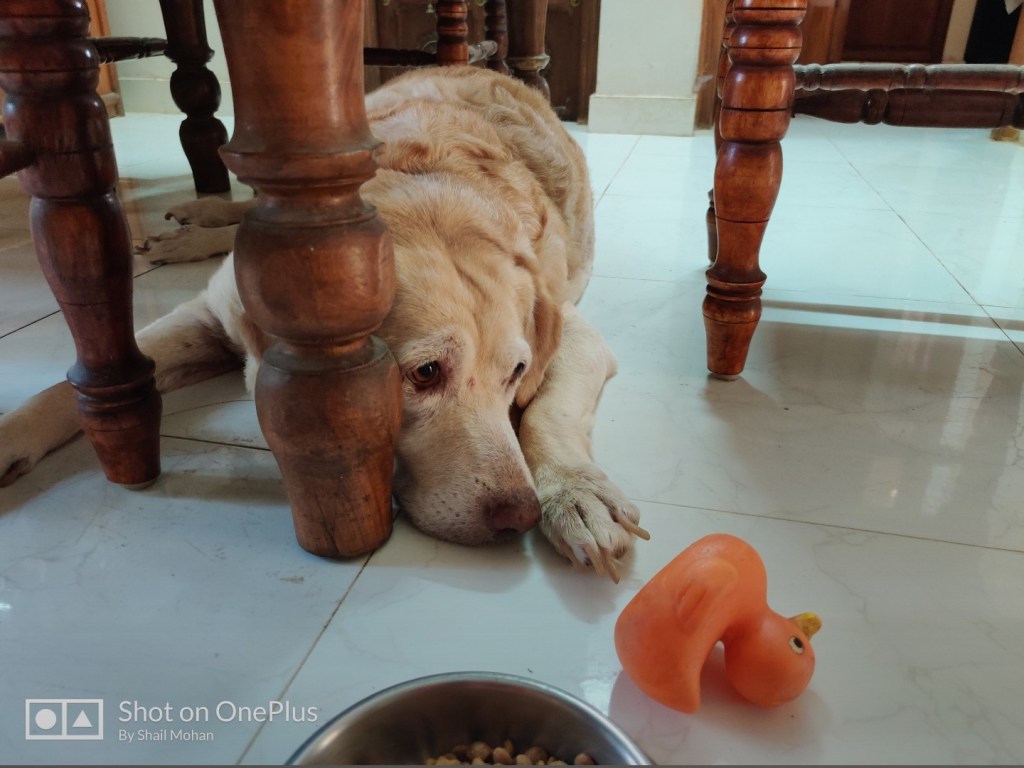 The orange duck belonged to Luci. It is the only one of Luci’s toys that I have kept back for myself in her memory. The rest of her stuff I gave away to other dogs. The duck occupies pride of place on my study table from where the little boy had picked it up.