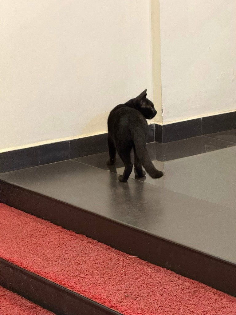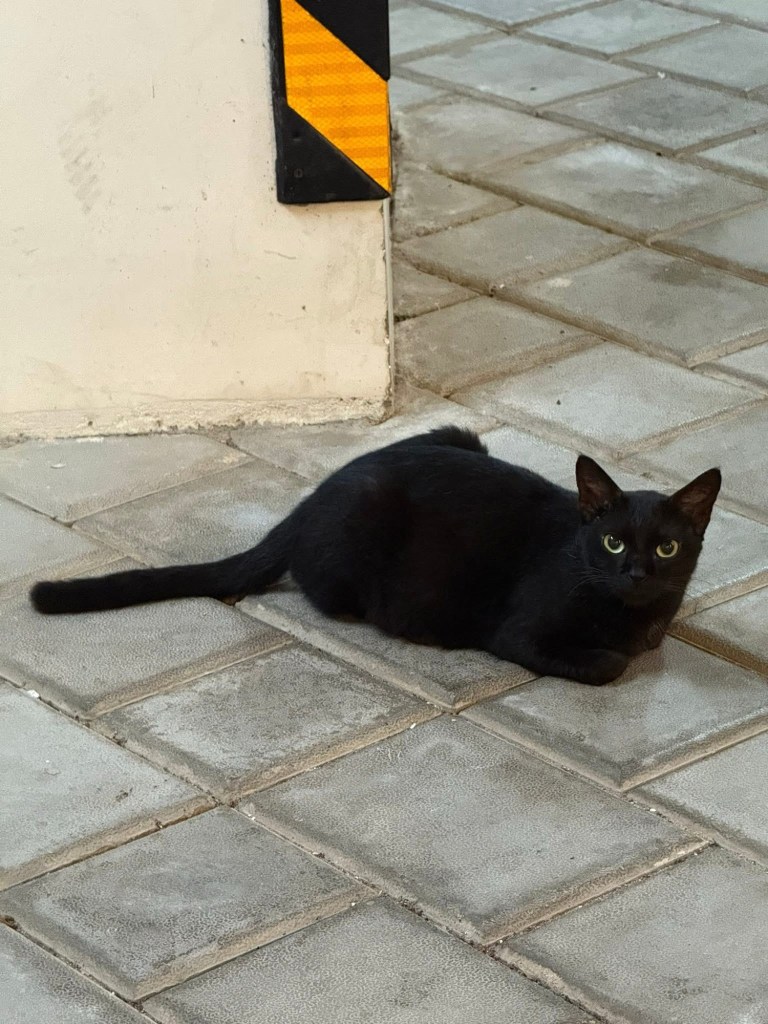 One day, Just like that, she appeared on the premises of our apartment. A black cat. I don’t think anyone considered her to be a bad omen or tried to chase her away. So she made her home in the basement car park.