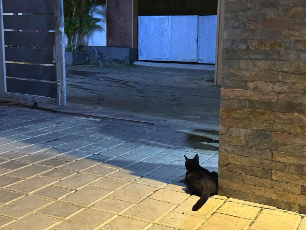 Most mornings, I used to catch a glimpse of her, a black shadow, sometimes walking up the driveway from the basement, at other times sitting on the half wall that separated our property from the one next door. Later, when she was assured no one was about to harm her, she took to sitting quietly next to the entrance to the lobby, idly eyeing those who walked in and out.