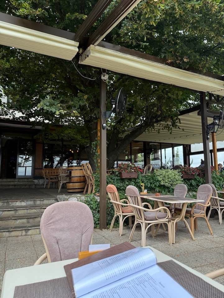 On the way to Golubac Fortress, we stopped for brunch at an upscale restaurant with a panoramic view of the Danube, known for its romantic ambiance called Vinogradi Restoran aka Vineyard Restaurant.